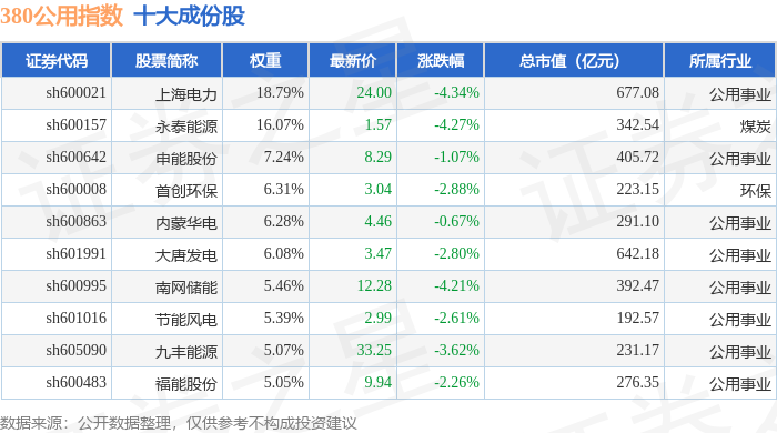 证券之星消息,11月21日,380公用(000113)指数报收于3018.76点,跌3.09%,成交67.38亿元,换手率2.17%。当日该指数成份股中,下跌的有17家,上海电力以4.34%的跌幅领跌。