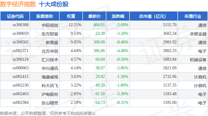 证券之星消息,11月21日,数字经济(399262)指数报收于2505.17点,跌4.19%,成交1115.02亿元,换手率2.07%。当日该指数成份股中,上涨的有2家,卓胜微以0.71%的涨幅领涨,下跌的有47家,北京君正以9.0%的跌幅领跌。