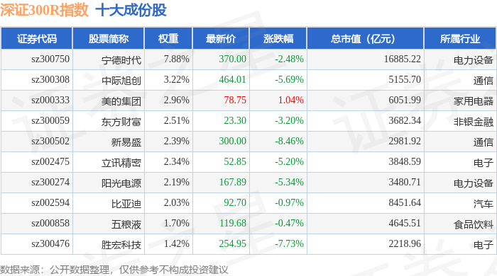 资金流向方面,深证300R(399344)指数成份股当日主力资金净流出合计372.98亿元,游资资金净流入合计87.14亿元,散户资金净流入合计285.84亿元。成份股资金流向详情见下表:
