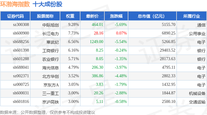 证券之星消息,11月21日,环渤海(399357)指数报收于3478.92点,跌2.13%,成交894.54亿元,换手率0.36%。当日该指数成份股中,上涨的有4家,海尔智家以0.86%的涨幅领涨,下跌的有36家,中际旭创以5.69%的跌幅领跌。