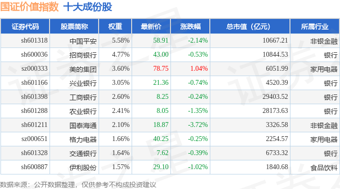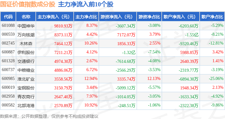 资金流向方面,国证价值(399371)指数成份股当日主力资金净流出合计159.48亿元,游资资金净流入合计41.25亿元,散户资金净流入合计117.94亿元。成份股资金流向详情见下表: