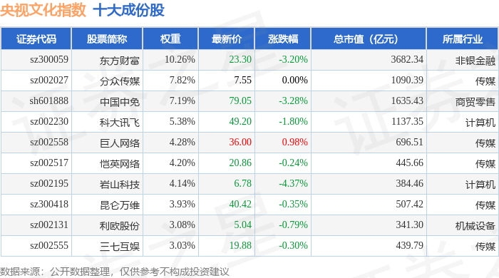 资金流向方面,央视文化(399557)指数成份股当日主力资金净流出合计35.73亿元,游资资金净流入合计8.74亿元,散户资金净流入合计26.99亿元。成份股资金流向详情见下表: