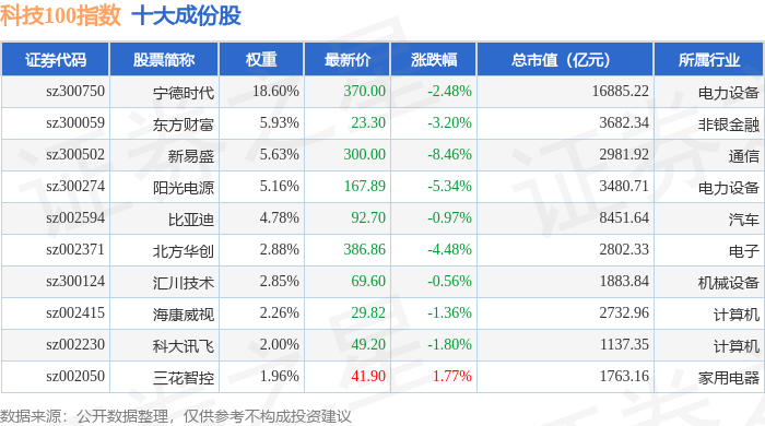 资金流向方面,科技100(399608)指数成份股当日主力资金净流出合计162.39亿元,游资资金净流入合计27.37亿元,散户资金净流入合计135.01亿元。成份股资金流向详情见下表: