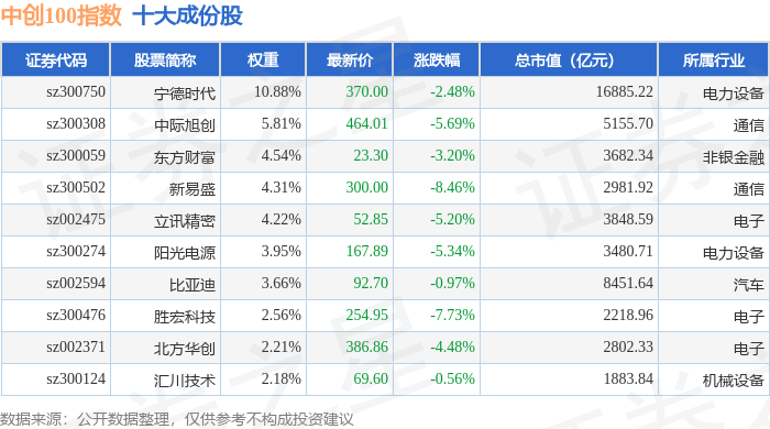 资金流向方面,中创100(399612)指数成份股当日主力资金净流出合计224.63亿元,游资资金净流入合计62.02亿元,散户资金净流入合计162.61亿元。成份股资金流向详情见下表: