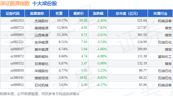 深证能源(399613)指数十大成份股详情如下: