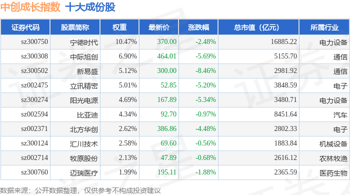资金流向方面,中创成长(399626)指数成份股当日主力资金净流出合计215.27亿元,游资资金净流入合计50.36亿元,散户资金净流入合计164.92亿元。成份股资金流向详情见下表: