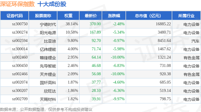 证券之星消息,11月21日,深证环保(399638)指数报收于7233.62点,跌4.53%,成交919.95亿元,换手率2.04%。当日该指数成份股中,下跌的有40家,天华新能以19.71%的跌幅领跌。