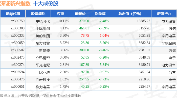 深证新兴(399641)指数十大成份股详情如下: