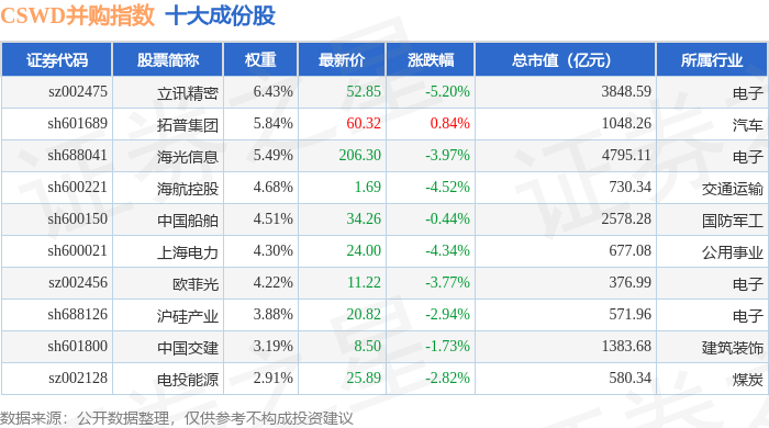 资金流向方面,CSWD并购(399992)指数成份股当日主力资金净流出合计34.87亿元,游资资金净流入合计10.97亿元,散户资金净流入合计23.75亿元。成份股资金流向详情见下表: