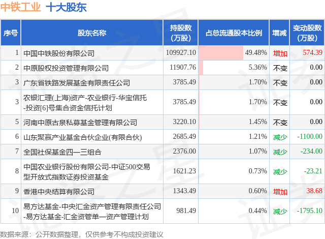 根据中铁工业2025年三季报公布的十大股东详情如下: