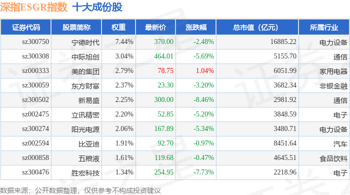 深指ESGR(470026)指数十大成份股详情如下: