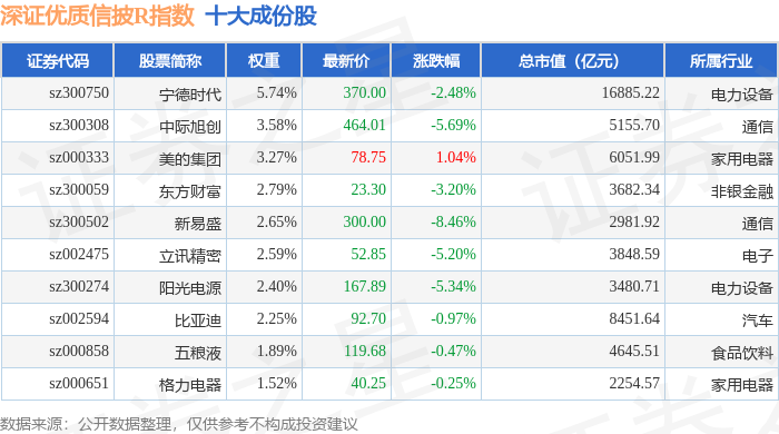 深证优质信披R(470065)指数十大成份股详情如下: