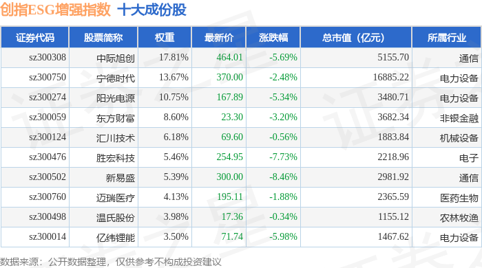 资金流向方面,创指ESG增强(970034)指数成份股当日主力资金净流出合计116.24亿元,游资资金净流入合计42.03亿元,散户资金净流入合计74.21亿元。成份股资金流向详情见下表: