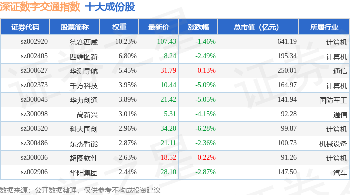 证券之星消息,11月21日,深证数字交通(970049)指数报收于4033.72点,跌3.07%,成交172.82亿元,换手率2.52%。当日该指数成份股中,上涨的有4家,晨曦航空以3.96%的涨幅领涨,下跌的有45家,航天智装以11.2%的跌幅领跌。