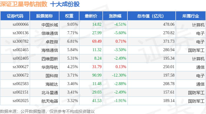证券之星消息,11月21日,深证卫星导航(970050)指数报收于3117.51点,跌3.08%,成交276.61亿元,换手率5.86%。当日该指数成份股中,上涨的有8家,赛微电子以11.82%的涨幅领涨,下跌的有33家,国科微以12.3%的跌幅领跌。