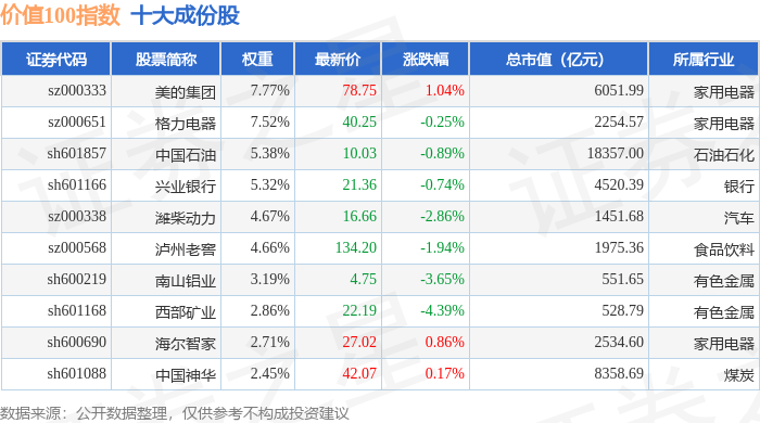 资金流向方面,价值100(980081)指数成份股当日主力资金净流出合计37.59亿元,游资资金净流入合计8.18亿元,散户资金净流入合计29.29亿元。成份股资金流向详情见下表:
