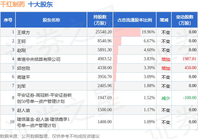 根据千红制药2025年三季报公布的十大股东详情如下: