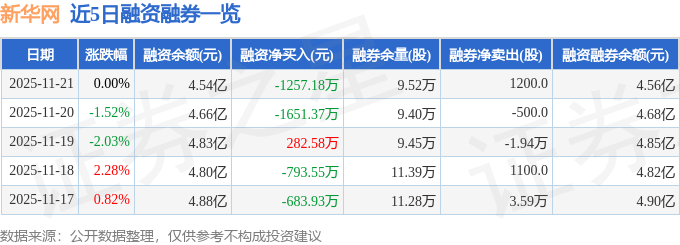 新华网融资融券信息显示,融资方面,当日融资买入1806.03万元,融资偿还3063.21万元,融资净偿还1257.18万元。融券方面,融券卖出1200.0股,融券偿还0.0股,融券余量9.52万股,融券余额185.66万元。融资融券余额4.56亿元。