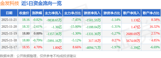证券之星消息,截至2025年11月21日收盘,金发科技(600143)报收于18.16元,下跌0.82%,换手率2.76%,成交量72.61万手,成交额13.21亿元。
