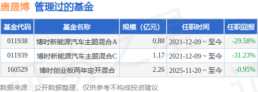 唐晟博先生:中国国籍,研究生硕士。2017-至今担任博时基金管理有限公司/历任研究员、研究员兼基金经理助理、高级研究员兼基金经理助理。现任博时新能源汽车主题混合型证券投资基金的基金经理。2025年11月20日起担任博时创业板两年定期开放混合型证券投资基金的基金经理。