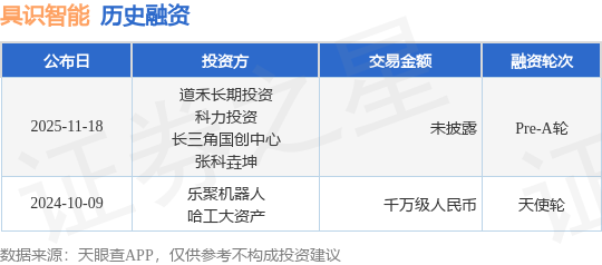 证券之星消息,根据天眼查APP于11月18日公布的信息整理,上海具识智能科技有限公司Pre-A轮融资,融资额未披露,参与投资的机构包括道禾长期投资,科力投资,长三角国创中心,张科垚坤。