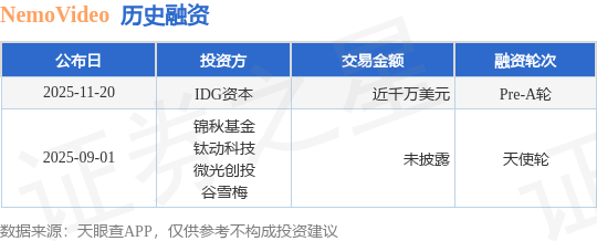证券之星消息,根据天眼查APP于11月20日公布的信息整理,北京即剪网络科技有限公司Pre-A轮融资,融资额近千万美元,参与投资的机构包括IDG资本。