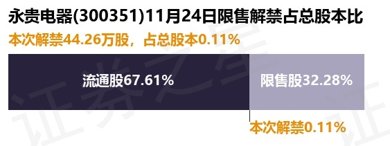 证券之星消息,根据市场公开信息整理,永贵电器(300351)于11月24日将有44.26万股限售股份解禁,为公司股权激励限售股份,占公司总股本0.11%。(本次数据根据历史公告整理得出,实际情况以上市公司最新公告为准)本次解禁后,公司还有1.26亿股限售股份,占总股本32.28%。具体如下图所示: