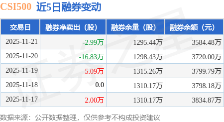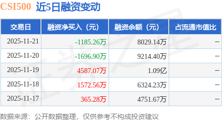 证券之星消息,11月21日,CSI500(159922)融资买入2205.31万元,融资偿还3390.57万元,融资净卖出1185.26万元,融资余额8029.14万元,近20个交易日中有14个交易日出现融资净买入。