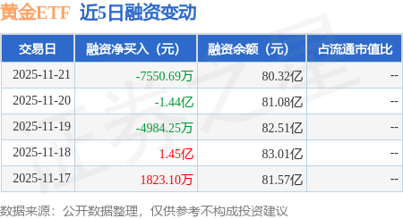 证券之星消息,11月21日,黄金ETF(518880)融资买入5.96亿元,融资偿还6.72亿元,融资净卖出7550.69万元,融资余额80.32亿元。