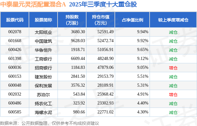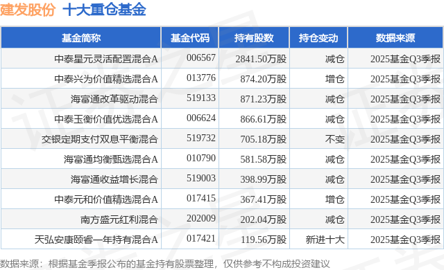 根据2025基金Q3季报公募基金重仓股数据,重仓该股的公募基金共32家,其中持有数量最多的公募基金为中泰证券(上海)资管的中泰星元灵活配置混合A。中泰星元灵活配置混合A目前规模为42.78亿元,最新净值2.8633(11月21日),较上一交易日下跌0.77%,近一年上涨9.16%。该公募基金现任基金经理为姜诚。姜诚在任的基金产品包括:中泰玉衡价值优选混合A,管理时间为2019年3月20日至今,期间收益率为161.33%;中泰兴诚价值一年持有混合A,管理时间为2021年2月8日至今,期间收益率为36.17%;中泰兴为价值精选混合A,管理时间为2022年1月18日至今,期间收益率为19.67%。