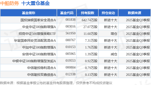 重仓中船防务的公募基金请见下表: