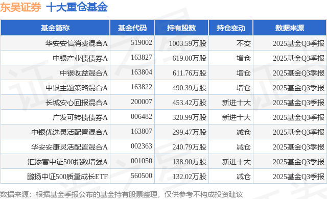 根据2025基金Q3季报公募基金重仓股数据,重仓该股的公募基金共52家,其中持有数量最多的公募基金为华安基金的华安安信消费混合A。华安安信消费混合A目前规模为26.27亿元,最新净值5.167(11月21日),较上一交易日下跌2.25%,近一年上涨14.14%。该公募基金现任基金经理为王斌。王斌在任的基金产品包括:华安精致生活混合A,管理时间为2021年3月9日至今,期间收益率为51.14%;华安聚嘉精选混合A,管理时间为2021年3月19日至今,期间收益率为69.77%;华安汇嘉精选混合A,管理时间为2022年1月26日至今,期间收益率为19.4%。