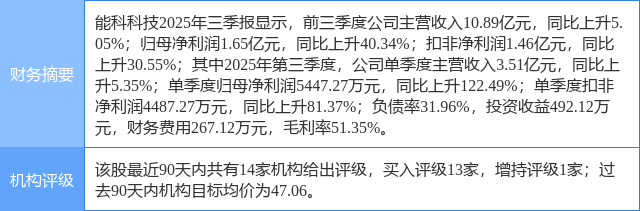 2025年11月2日,民生证券研究员吕伟,白青瑞发布了对能科科技的研报《2025年三季报点评:战略聚焦提升盈利能力,前瞻布局灯塔工厂》,该研报对能科科技给出“买入”评级。研报中预测公司2025-2027年收入分别为17.25、19.87、23.21亿元;EPS分别为0.93、1.10、1.33元,2025年10月31日收盘价对应PE分别为50X、42X、35X,维持“推荐“评级。证券之星数据中心根据近三年发布的研报数据计算,该研报作者对此股的盈利预测准确度为64.03%。