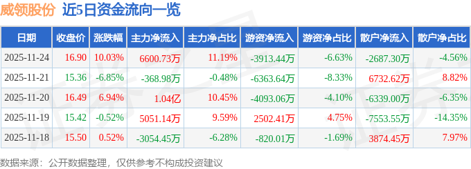 11月24日的资金流向数据方面,主力资金净流入6600.73万元,占总成交额11.19%,游资资金净流出3913.44万元,占总成交额6.63%,散户资金净流出2687.3万元,占总成交额4.56%。