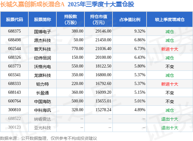 长城久嘉创新成长混合A的前十大重仓股如下: