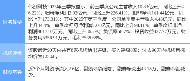 2025年11月3日,中邮证券研究员吴文吉,翟一梦发布了对伟测科技的研报《算力占比持续提升》,该研报对伟测科技给出“买入”评级。研报中预计公司2025-2027年分别实现营收15.7/21.2/27.2亿元,实现净利润3.0/4.1/5.6亿元,维持“买入”评级。证券之星数据中心根据近三年发布的研报数据计算,该研报作者对此股的盈利预测准确度为73.9%。