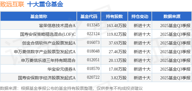 根据2025基金Q3季报公募基金重仓股数据,重仓该股的公募基金共7家,其中持有数量最多的公募基金为富荣基金的富荣信息技术混合A。富荣信息技术混合A目前规模为1.31亿元,最新净值0.9139(11月21日),较上一交易日下跌1.86%,近一年上涨2.54%。该公募基金现任基金经理为李延峥。
