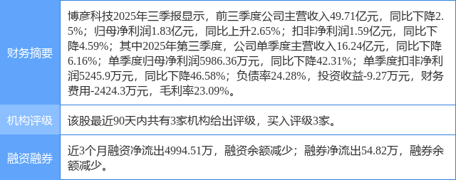 2025年10月29日,中邮证券研究员孙业亮,刘聪颖发布了对博彦科技的研报《AI+数字化业绩稳健,新拓行业业务进展显著》,该研报对博彦科技给出“买入”评级。研报中预计公司2025-2027年EPS分别为0.37\0.45\0.52元,对应公司10月28日收盘价13.54元,2025-2027年PE分别为36.36\29.97\25.88,维持“买入”评级。风险提示:证券之星数据中心根据近三年发布的研报数据计算,该研报作者对此股的盈利预测准确度为9.95%。