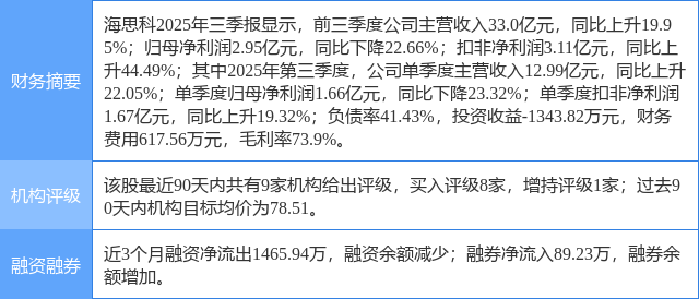 2025年8月28日,东吴证券研究员朱国广,张翀翯发布了对海思科的研报《2025年中报点评:麻醉产品销售符合预期,创新管线进入商业化兑现期》,该研报对海思科给出“买入”评级。证券之星数据中心根据近三年发布的研报数据计算,该研报作者对此股的盈利预测准确度为69.72%。