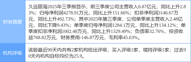 2025年9月15日,东吴证券研究员王紫敬发布了对久远银海的研报《2025年半年报点评:经营质量改善,AI+持续赋能》,该研报对久远银海给出“买入”评级。证券之星数据中心根据近三年发布的研报数据计算,该研报作者对此股的盈利预测准确度为12.35%。