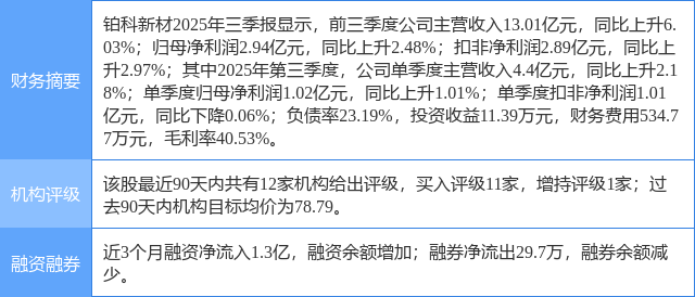 今日铂科新材(300811)涨5.06%,收盘报68.98元。