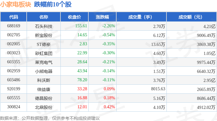 从资金流向上来看,当日小家电板块主力资金净流出2874.7万元,游资资金净流入1150.08万元,散户资金净流入1724.63万元。小家电板块个股资金流向见下表: