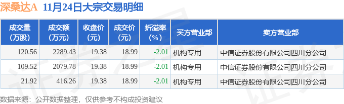 证券之星消息,11月24日深桑达A发生大宗交易,交易数据如下: