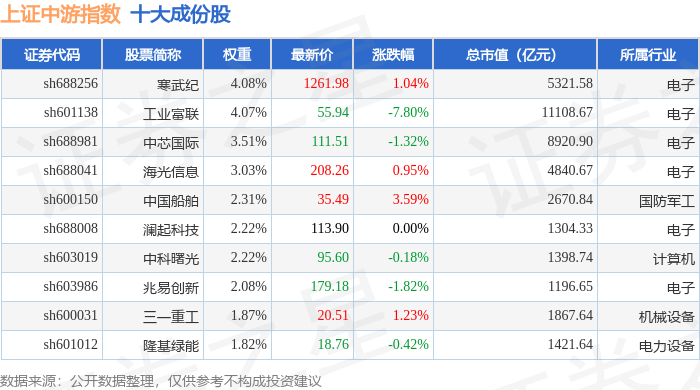 证券之星消息,11月24日,上证中游(000095)指数报收于3616.76点,涨0.33%,成交1902.47亿元,换手率1.22%。当日该指数成份股中,上涨的有129家,长城军工以10.0%的涨幅领涨,下跌的有62家,工业富联以7.8%的跌幅领跌。