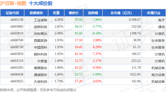 沪互联+(000162)指数十大成份股详情如下: