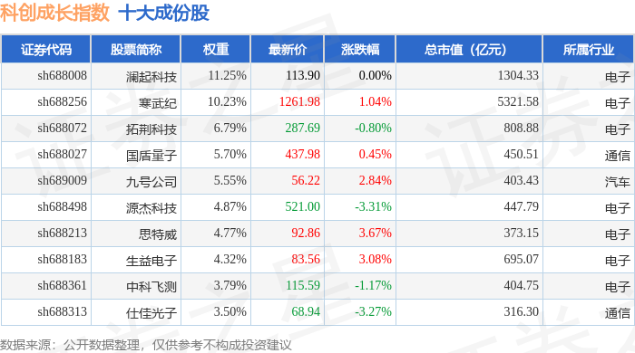 证券之星消息,11月24日,科创成长(000690)指数报收于1639.18点,涨1.43%,成交298.35亿元,换手率2.13%。当日该指数成份股中,上涨的有40家,鼎通科技以11.88%的涨幅领涨,下跌的有9家,源杰科技以3.31%的跌幅领跌。