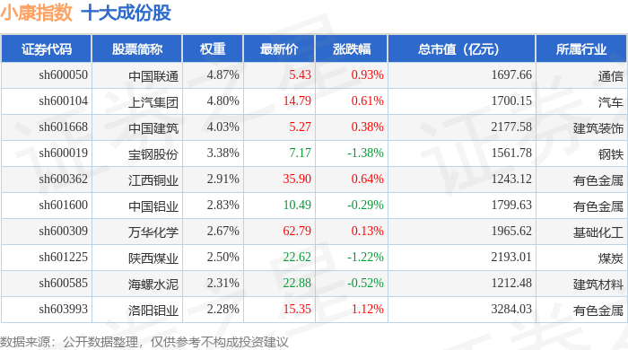 证券之星消息,11月24日,小康指数(000901)报收于6207.7点,跌0.15%,成交918.55亿元,换手率0.64%。当日该指数成份股中,上涨的有35家,广汽集团以10.0%的涨幅领涨,下跌的有60家,中国海油以3.15%的跌幅领跌。