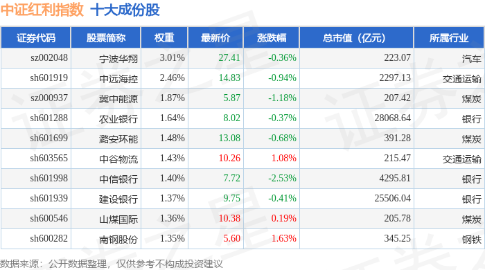 资金流向方面,中证红利(000922)指数成份股当日主力资金净流出合计10.39亿元,游资资金净流入合计2.18亿元,散户资金净流入合计8.21亿元。成份股资金流向详情见下表: