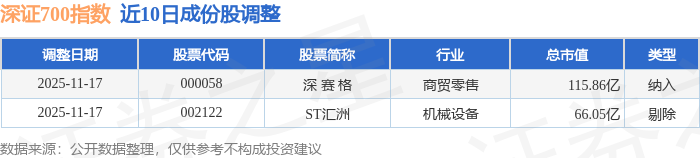 近10日内深证700(399010)指数成份股做了调整,新纳入了1只股票,剔除了1只股票。