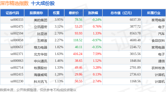 资金流向方面,深市精选(399013)指数成份股当日主力资金净流出合计17.49亿元,游资资金净流出合计21.87亿元,散户资金净流入合计39.36亿元。成份股资金流向详情见下表: